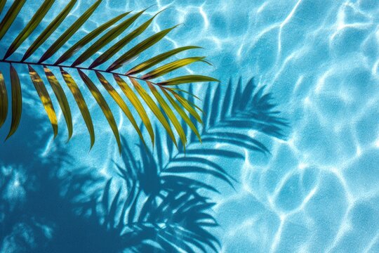 Bright red leaves with shadows floating on sunlit blue water with a tiled pattern, a vibrant and refreshing summer nature background.