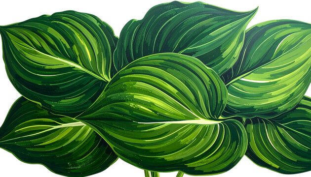 Lush green leaves, detailed veining, overlapping in a close-up botanical view