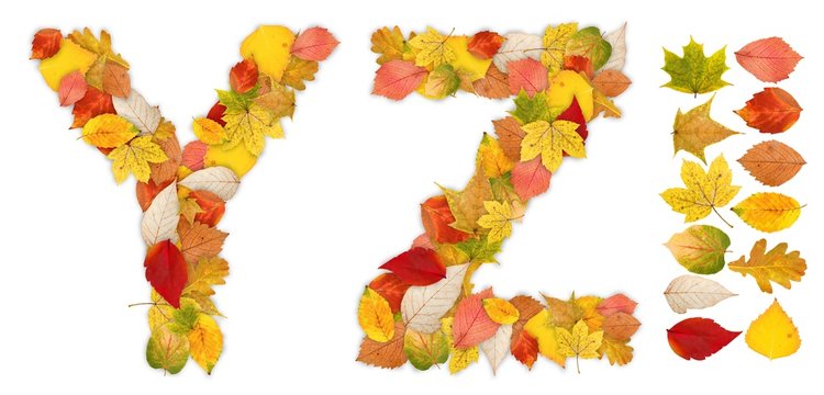 Characters Y and Z made of autumn leaves