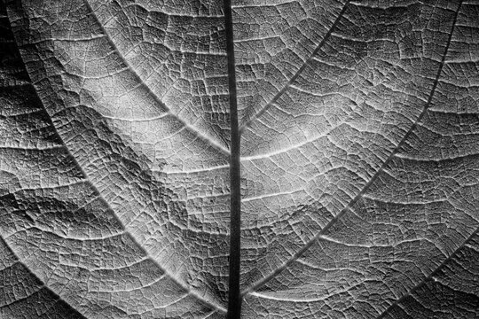 Close-up monochrome leaf with dramatic shadow and light