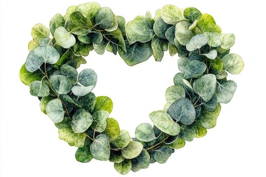A decorative heart-shaped wreath composed of fresh green leaves, suitable for various occasions and decorations