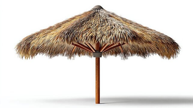 A straw hut with a wooden pole and a straw roof. The hut is open and the roof is tilted