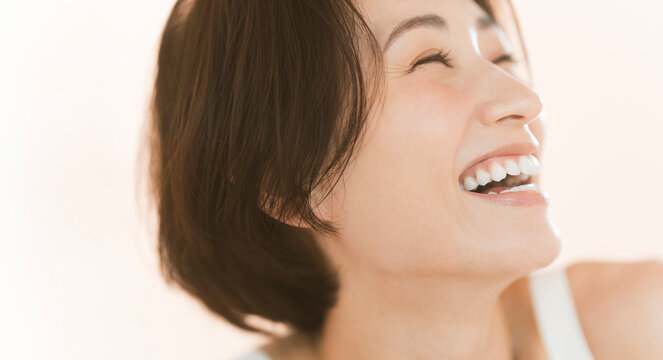クローズアップで撮影された若い日本人女性のナチュラルビューティーポートレートです。