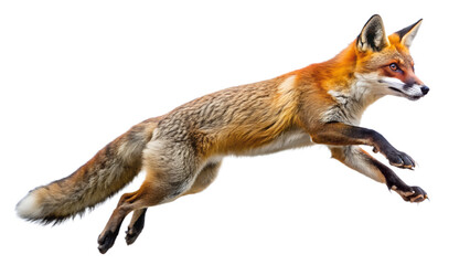 a fox leaping to catch its prey isolated on white background