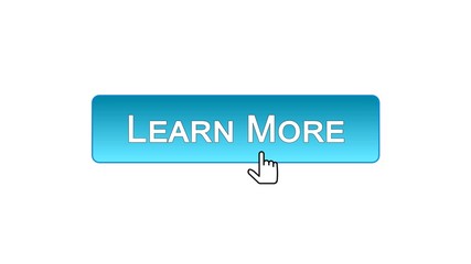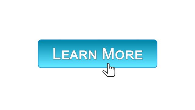 Learn more web interface button clicked with mouse cursor, blue color, webinar