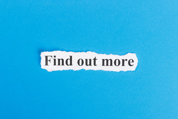 Find out more text on paper. Word Find out more on torn paper. Concept Image