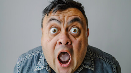 A Latino man with Down syndrome looking surprised and amazed, with a wide-eyed expression. Learning Disability