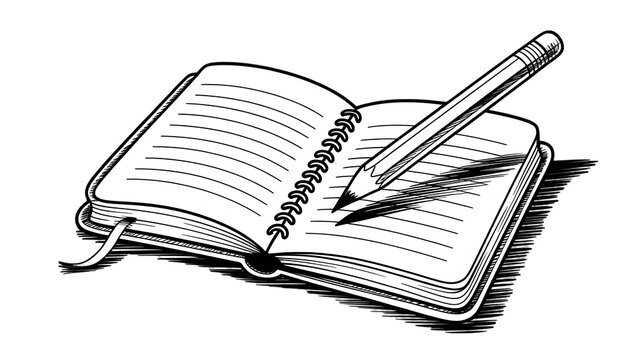 An open notebook with clean, blank pages ready to capture thoughts, ideas, and creativity, lying alongside a pen and clip. This image evokes feelings of productivity, learning, and self-expression.