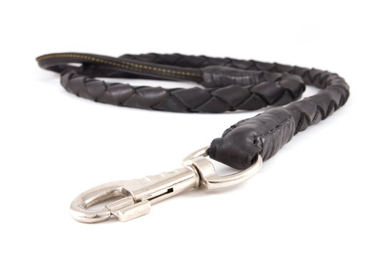 Close-up of a dog walking leash and poop multicolored bags on a table.
