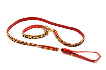 Blue retractable dog leash on a blue background, with space for text. Flat lay.