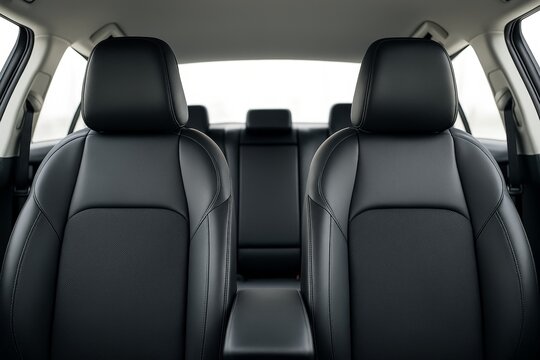 The front seats and headrests in this modern car interior are incredibly comfortable, with sleek black leather upholstery and an elegant design perfect for a luxurious ride