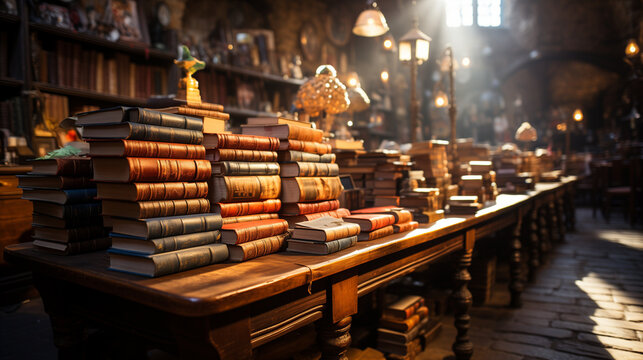 Dans une librairie, un vieux livre s'anime, racontant des contes fantastiques aux lecteurs émerveillés, créant un monde magique.