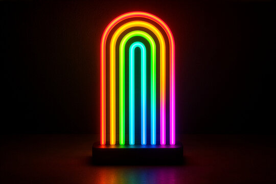 Rainbow arch shaped rgb neon table lamp in a dark room