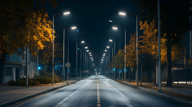 Urban Street with Modern LED Lighting Poles