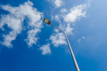Street lantern on sky with white clouds background.A modern street LED lighting pole.
