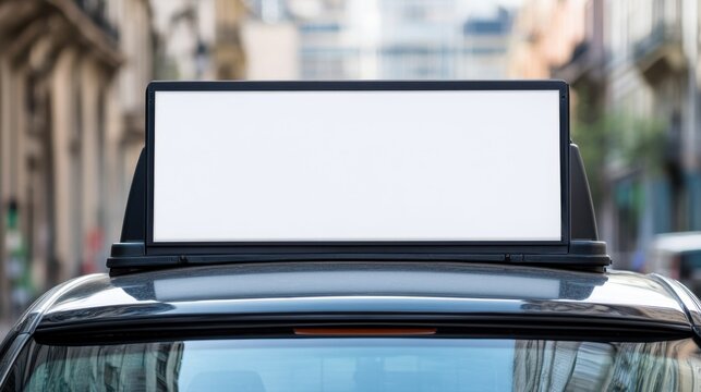 Black lighted billboard with copyspace on business center rooftop with spotlights and night city skyscrapers reflection in building windows. 3D rendering, mock up