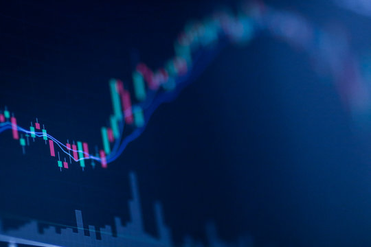 Modern stock market visualization with upward trends and colored tickers