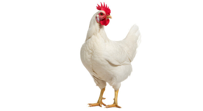 Pristine White Leghorn Chicken, Modern & Sleek, Photorealistic 3D Render, Isolated.
