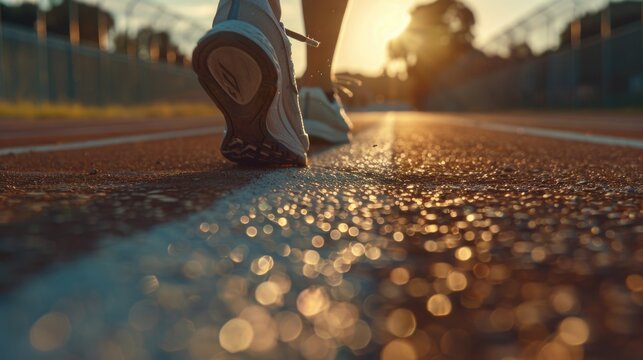 Person walking on a tennis court at sunset. Suitable for sports and leisure concepts