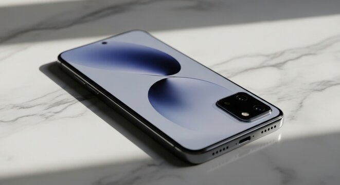 Modern smartphone on marble surface with shadow