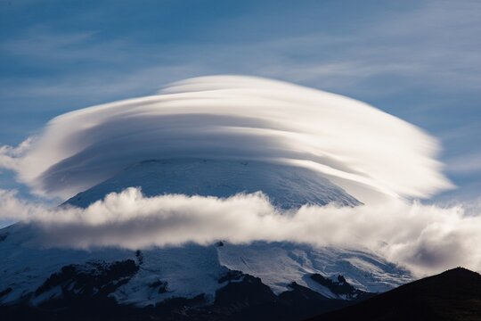 lenticular clouds above volcano