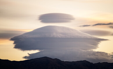 lenticular clouds above volcano