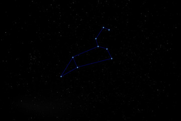 Leo constellation outline in starry night sky