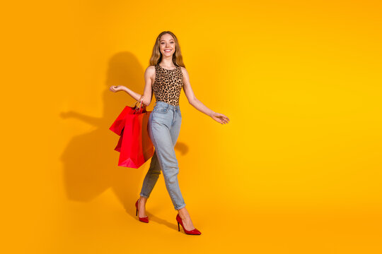 full length of confident african american woman in high heeled sandals and trendy outfit posing on grey.