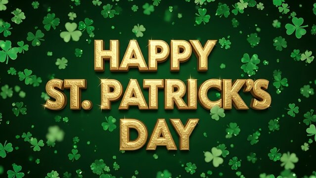 A repeating pattern of green and gold shamrocks, St. Patrick's Day