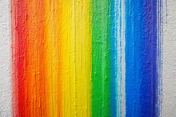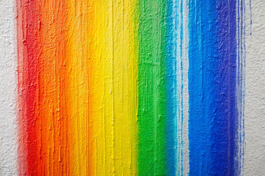 A wall painted with vibrant rainbow colors, showcasing a beautiful gradient from red to violet