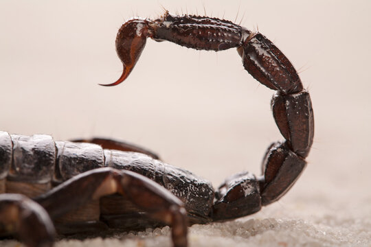 Menacing closeup of a lethal Deathstalker scorpion's stinger.