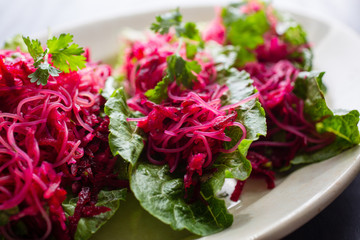Healthy salad meal with lettuce and cherry tomatoes on white plate