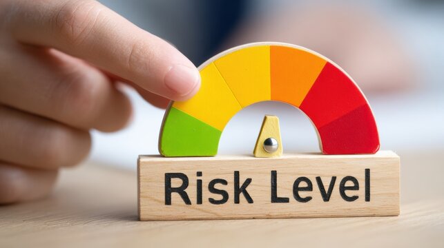 High Risk of Business decision making and risk analysis. Measuring level bar virtual, Risky business risk management control and strategy.