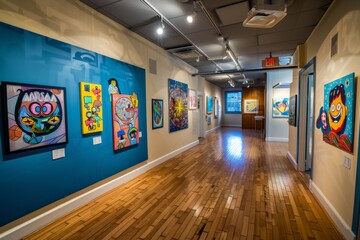 A board game-inspired art gallery with paintings, sculptures, and installations inspired by iconic board game themes and imagery, Generative AI