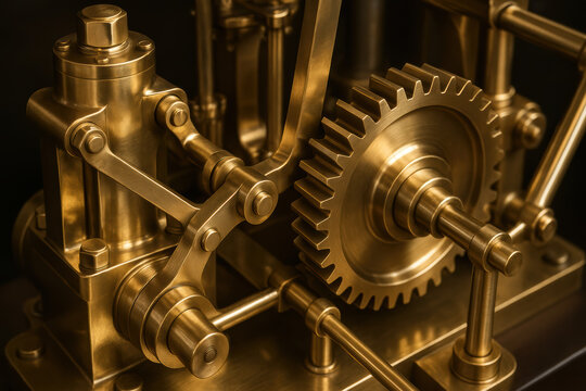 Mechanism with flywheels and gears in operation showcasing intricate mechanics and design