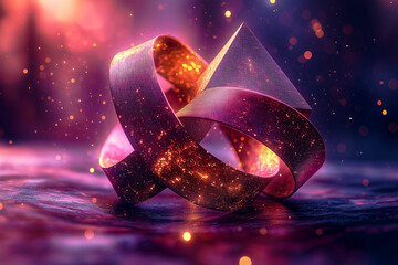 Impossible pyramid Mobius loop with levitating interlocking rings