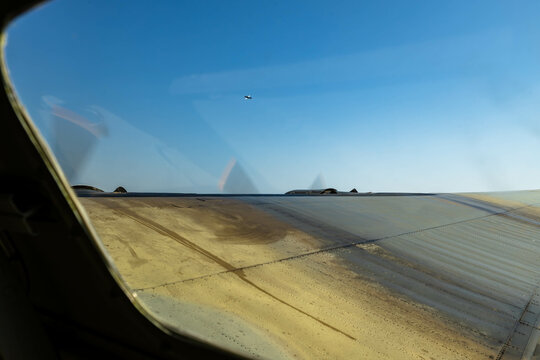 looking towards Tulsa, Oklahoma from the right side of a B-24 bomber in flight