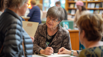 Author signing books at a book fair.