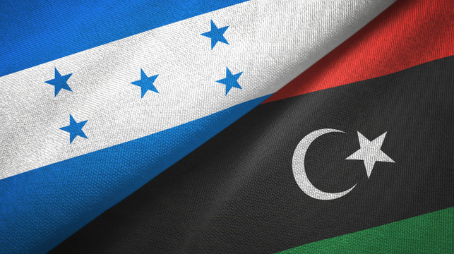 Libya and Ghana two flags textile cloth, fabric texture