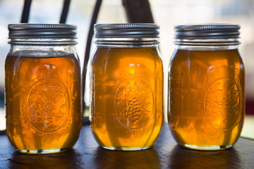 Clear glass jar suitable for storage, preserves, or decoration. Ideal for showcasing food items or crafts.