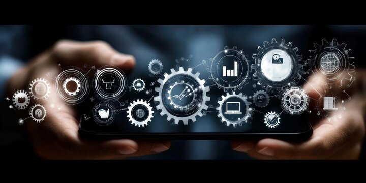 PLM Product lifecycle management system technology concept. Technology, Internet and network concept.