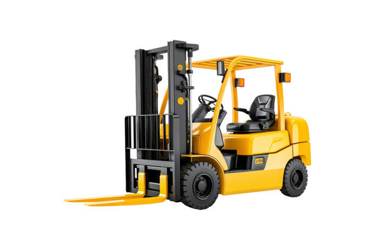 Yellow forklift with black forks and a seat. Suitable for industrial, construction, warehouse, logistics, and transportation themes
