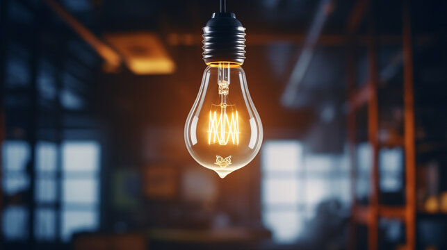 Illuminated vintage light bulb in darkened background with bokeh effect