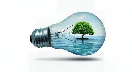 Imaginative concept of goldfish swimming inside water-filled light bulb