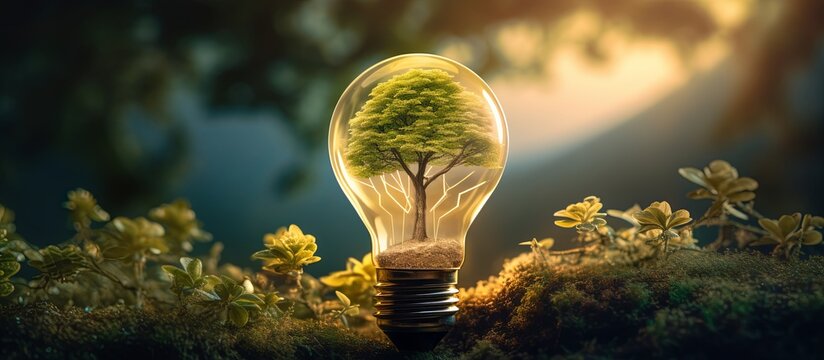 Conceptual image depicting a light bulb with a small tree growing inside symbolizing sustainable energy renewable resources and the potential for environmental growth and innovation