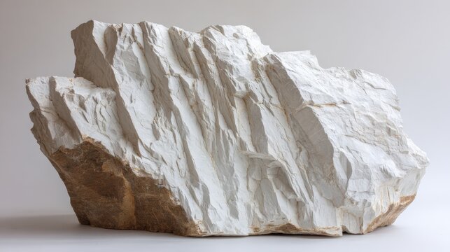 Substantial chunk of light colored mineral specimen rests against a neutral background