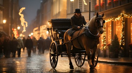 Cozy christmas setting with santa hat and rocking horse