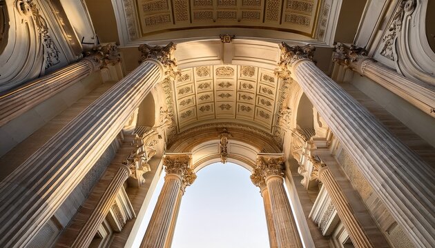large classical marble arch with fluted columns and intricate carvings illuminated by soft natural light