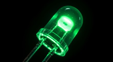 Illuminating Green LED Diode: A Close-Up Macro Photography of a Glowing Light Emitting Diode in Vivid Green