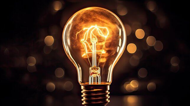 Light bulb warm light shade on dark background, concept of creativity and innovation.